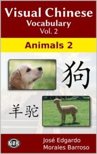This second volume shows a second set of 50 animals, of which, their names are presented in Spanish and Chinese, with their respective romanization (pinyin) and four writing styles in characters (hanzi).