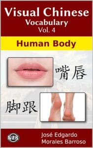 This fourth volume shows a set of 50 parts of the human body, of which, their names are presented in Spanish and Chinese, with their respective romanization (pinyin) and four writing styles in characters (hanzi).